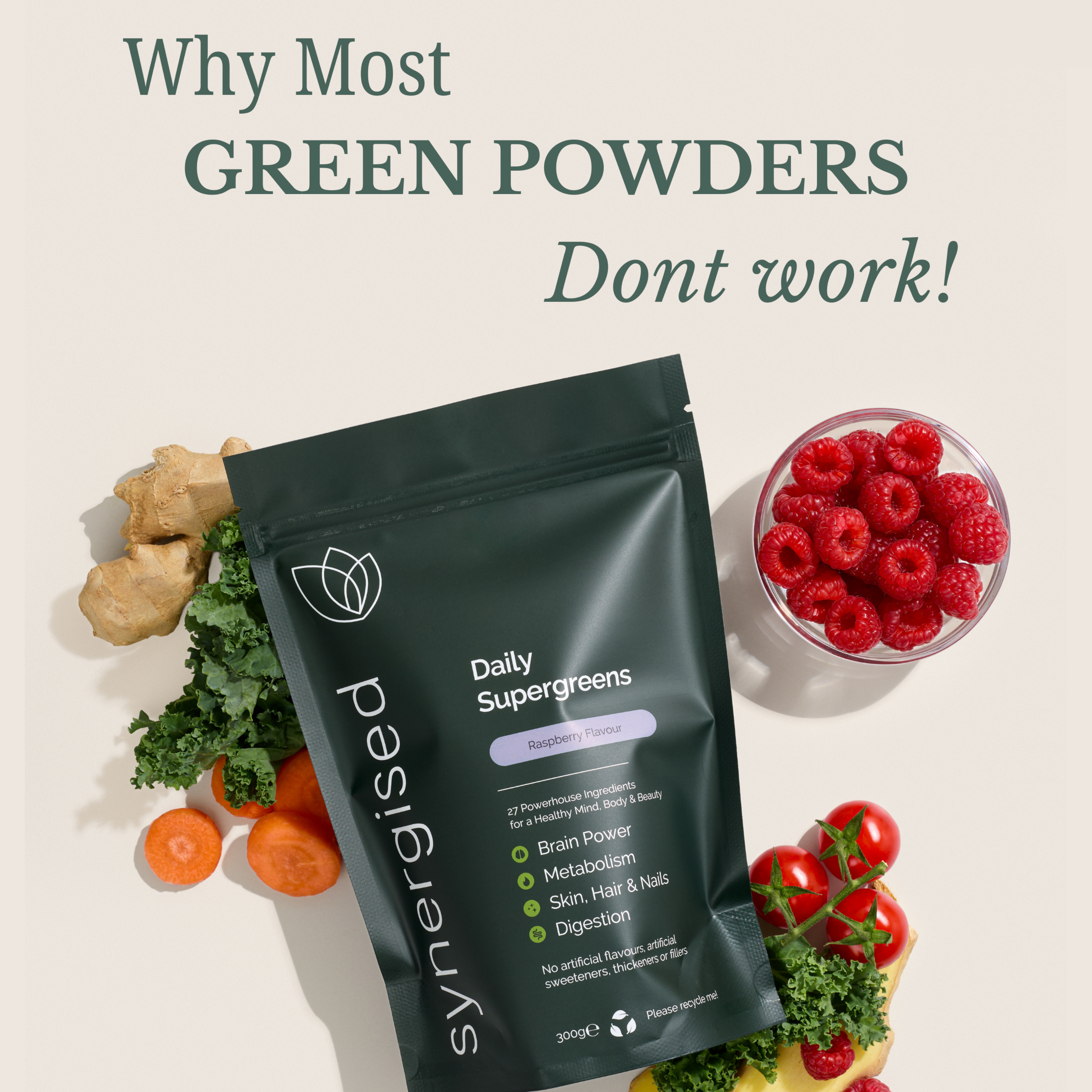 The greens powder market is saturated with products that overpromise and underdeliver. At Synergised, we believe in raising the standard.